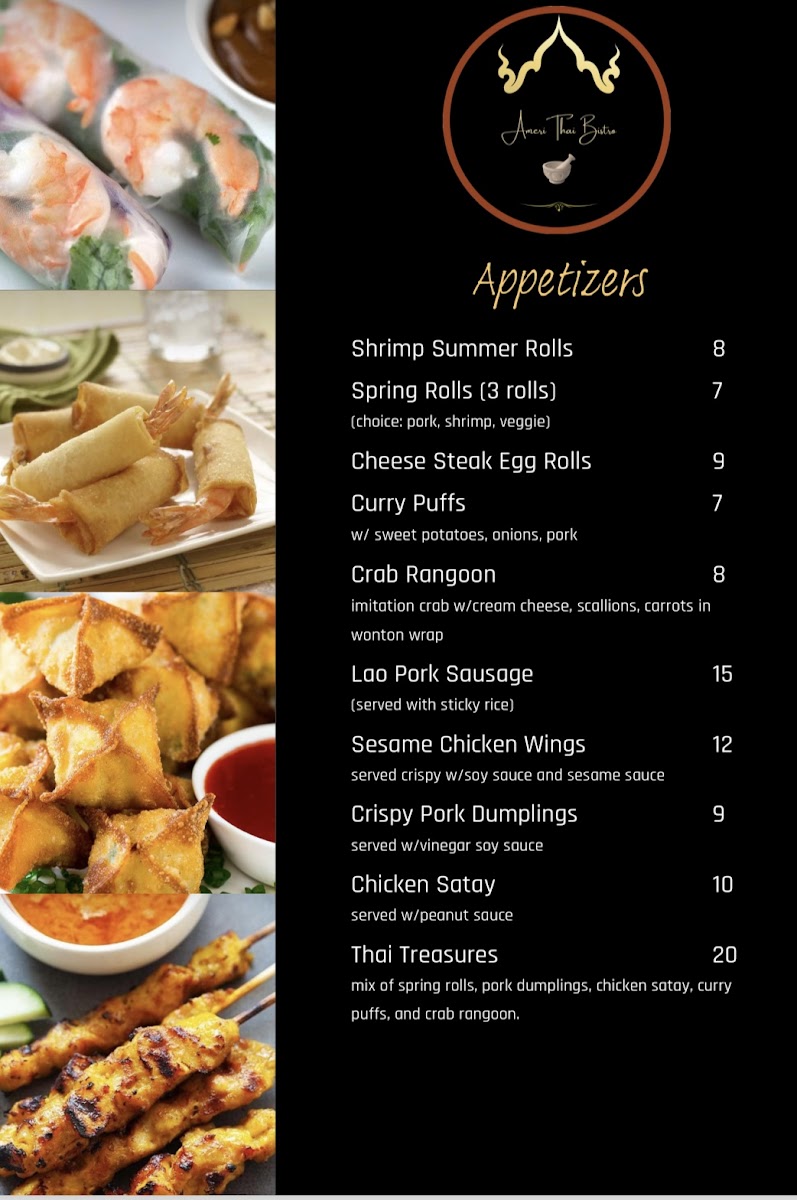 Welcome to Ameri Thai Bistro, a hidden gem nestled in Philadelphia, where delightful flavors intertwine with rich Thai traditions. The menu showcases a remarkable selection of dishes that cater to every palate, starting with refreshing salads like the Som Tum Salad with shrimp and the zesty Beef Salad, both bursting with fresh ingredients.