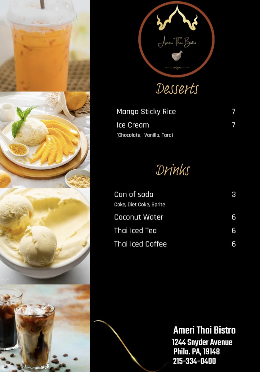 Don't miss out on the delightful desserts, especially the classic Mango Sticky Rice paired perfectly with sweet coconut sauce. At Ameri Thai Bistro, each dish tells a story of passion and creativity, making your dining experience truly unforgettable.